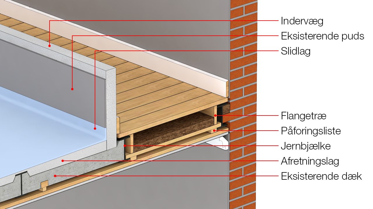Betonudstøbning i gulvkonstruktion med jernbjælkelag