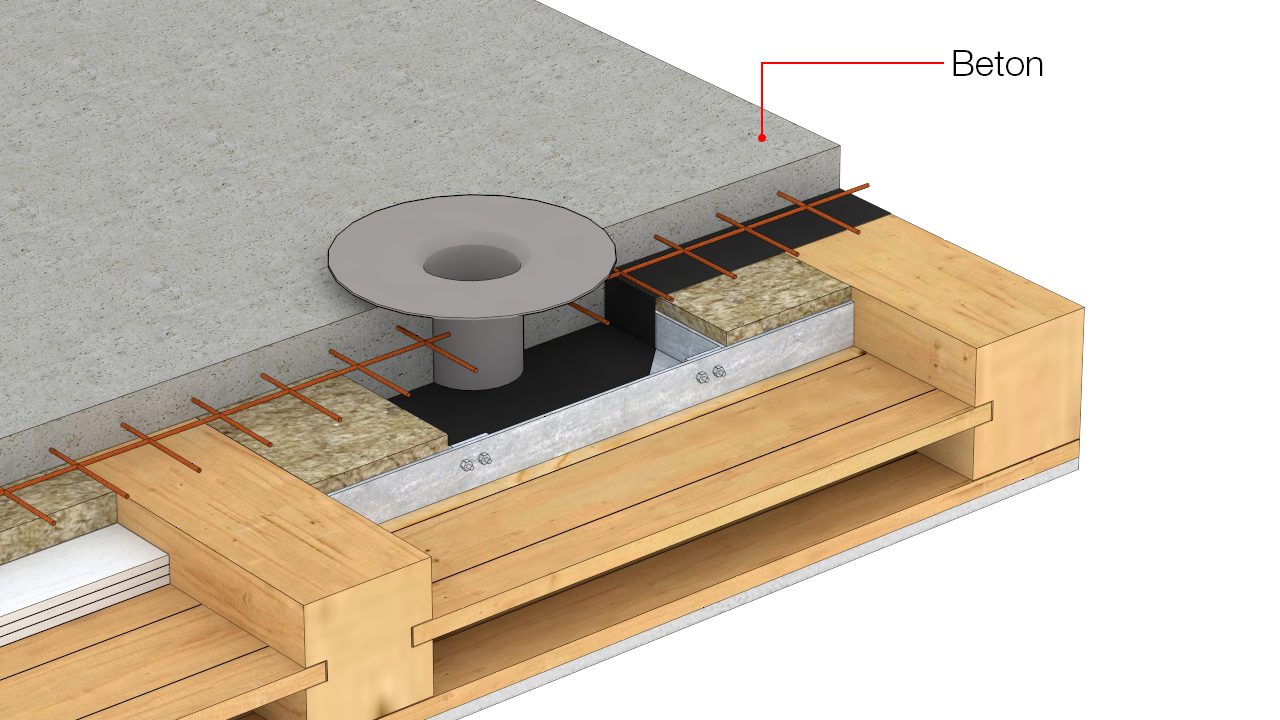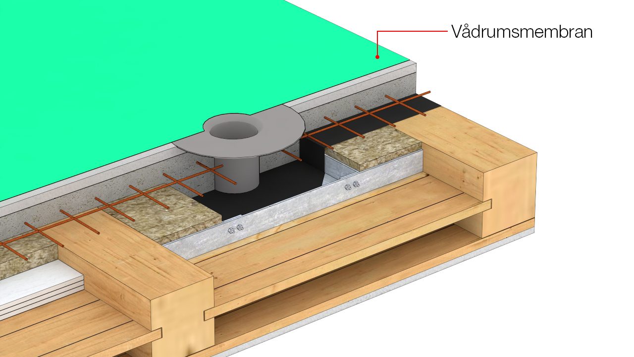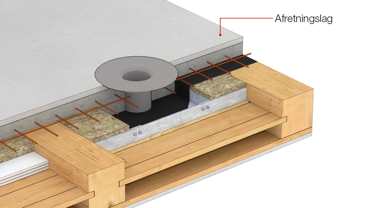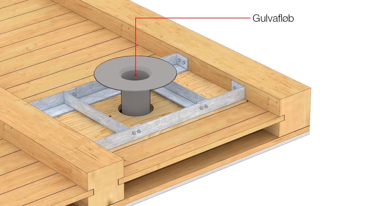 Gennemføring af gulvafløb i træbjælkelag