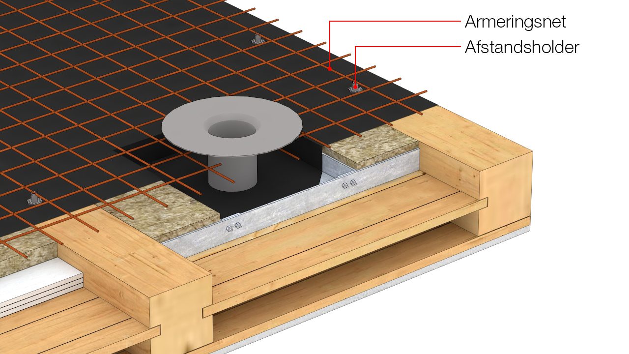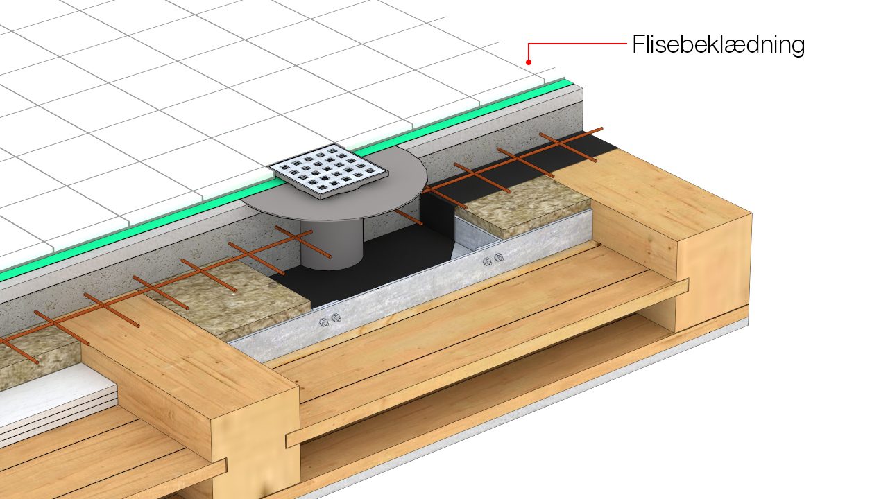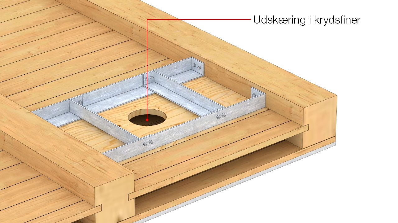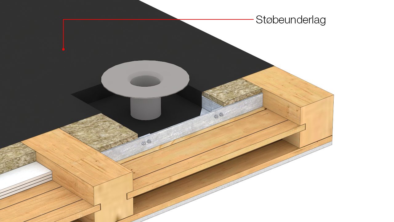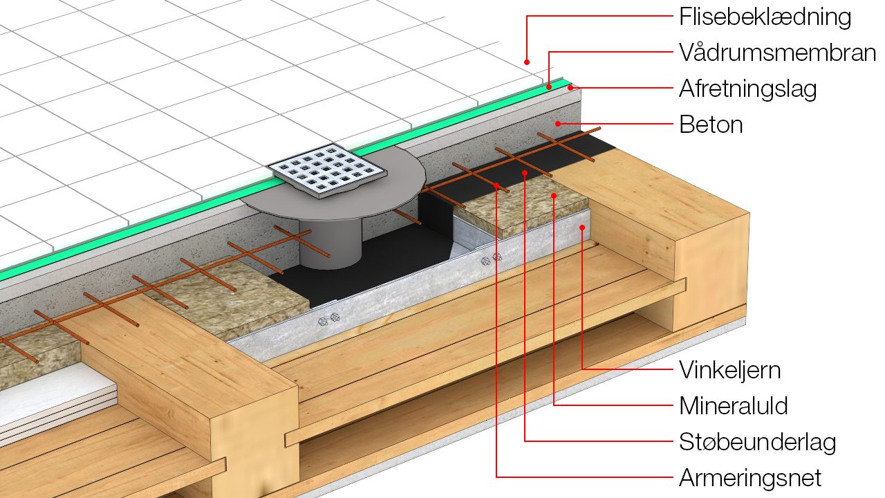 Gennemføring af gulvafløb i træbjælkelag