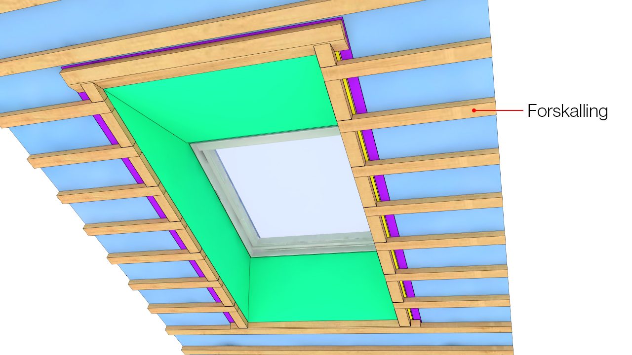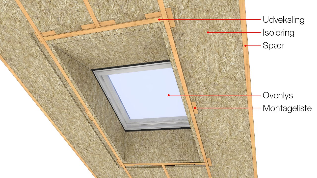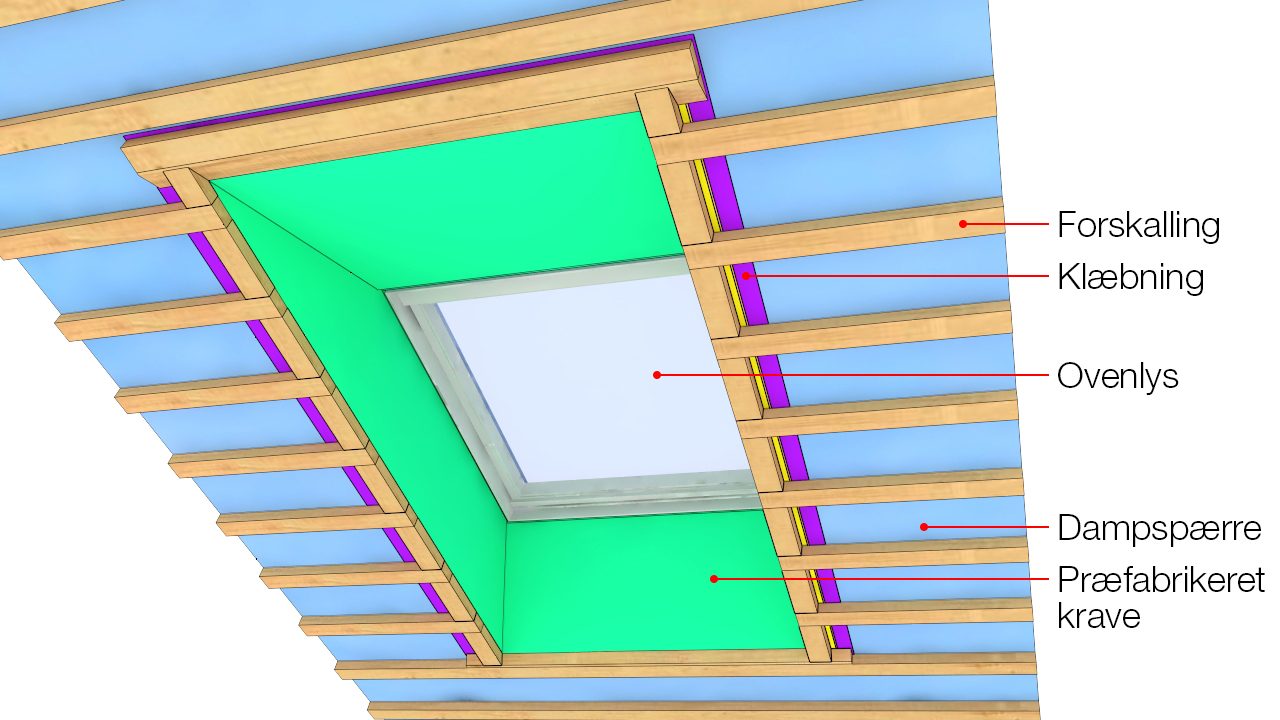Ovenlys i skråvæg med krydsfiner