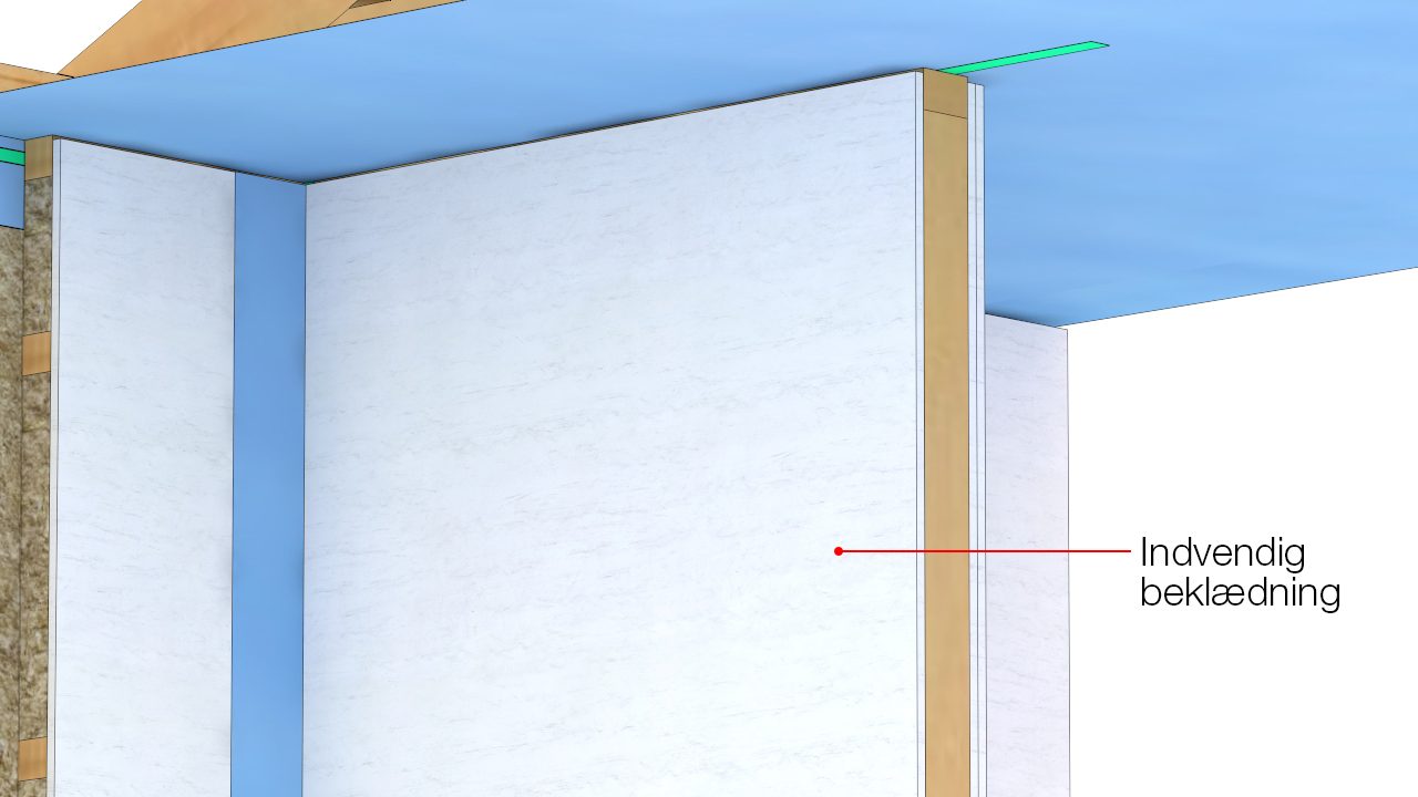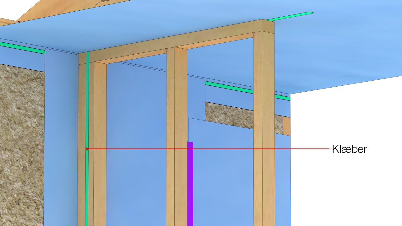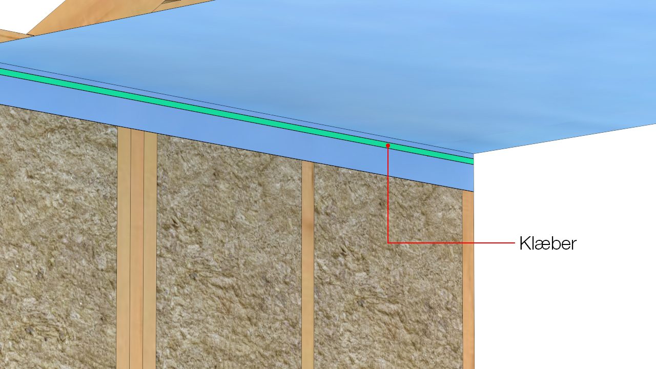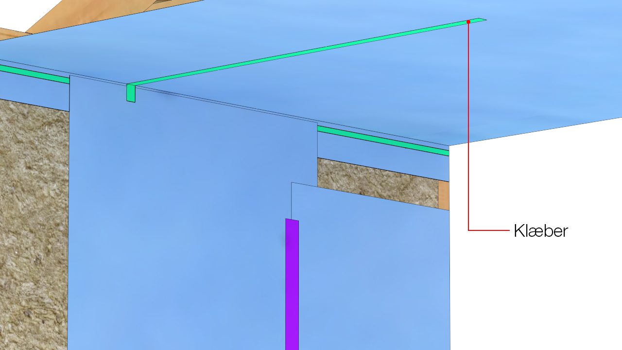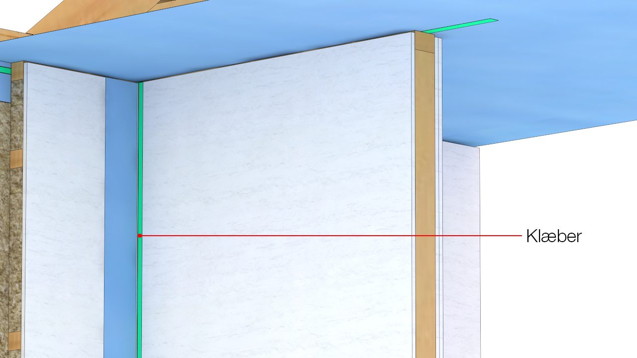 Overgang mellem dampspærre i loft og vådrumsmembran i væg
