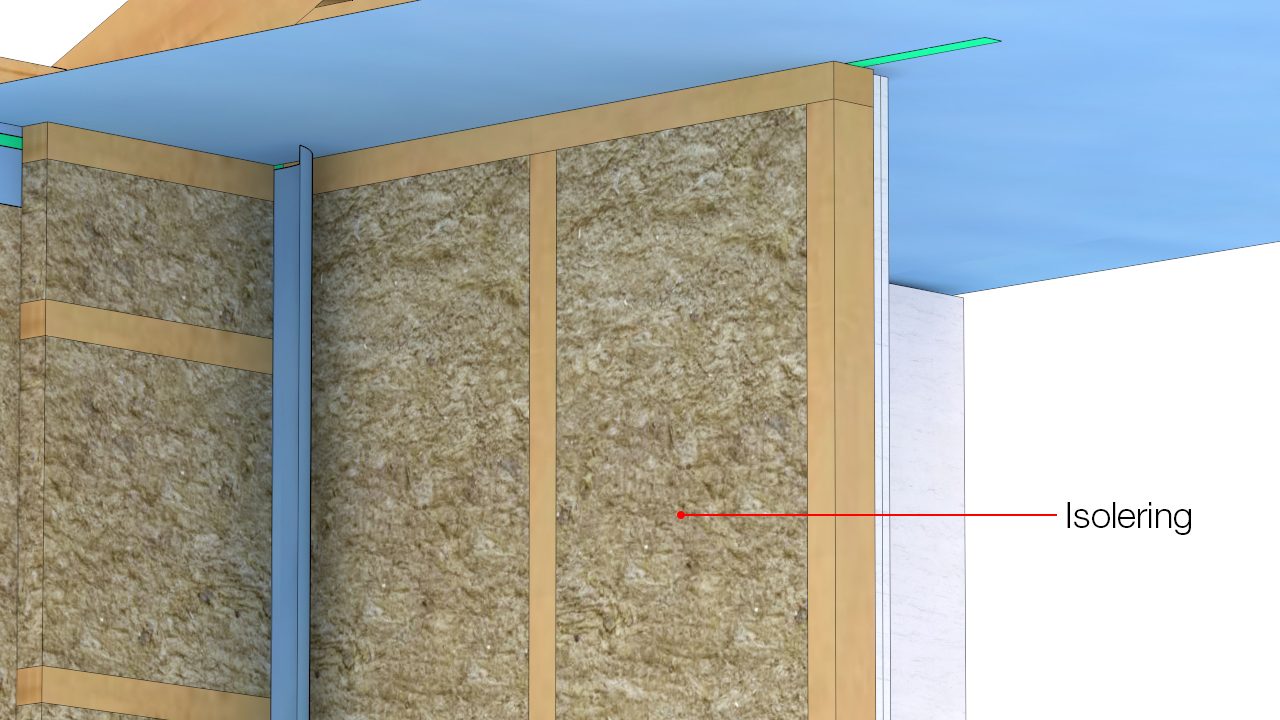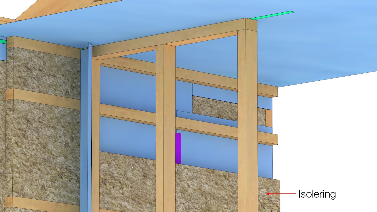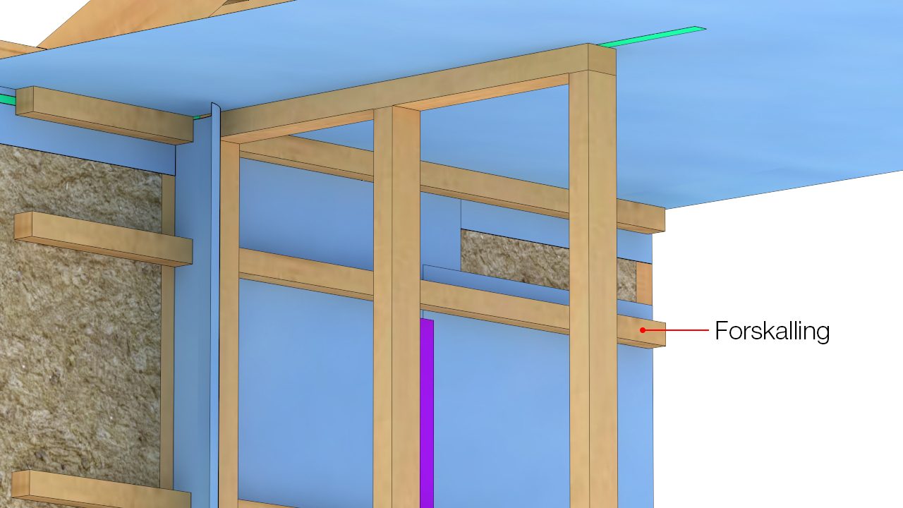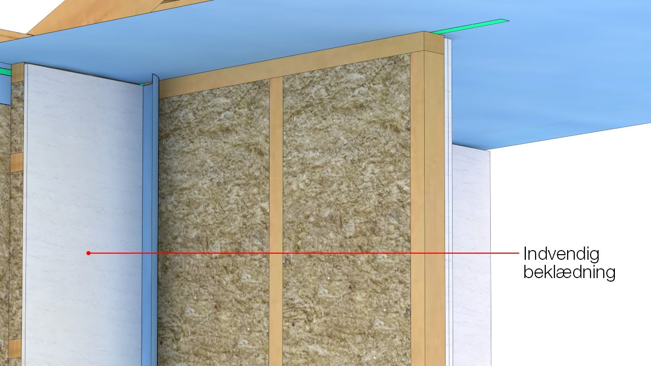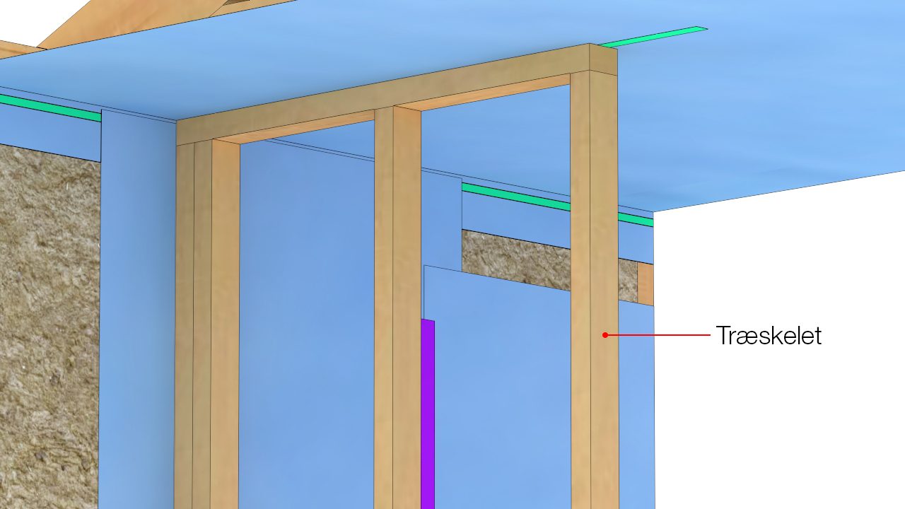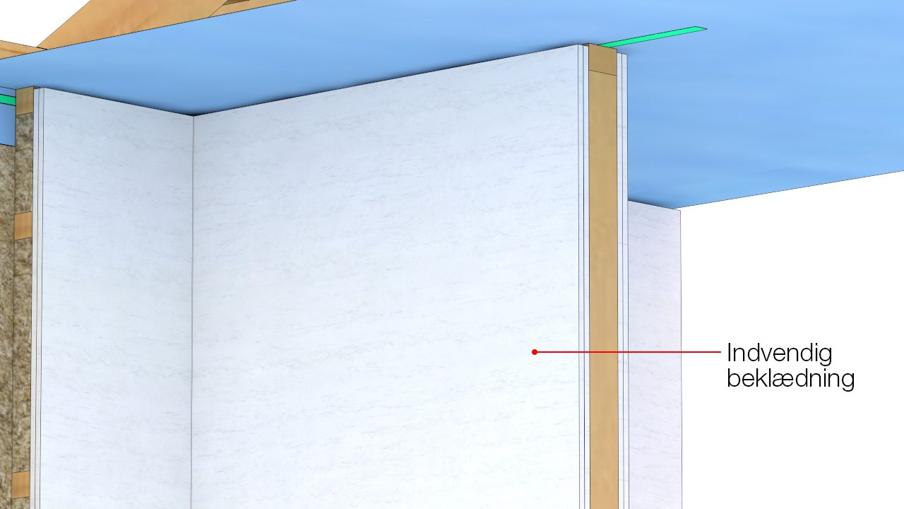 Overgang mellem dampspærre i loft og vådrumsmembran i væg