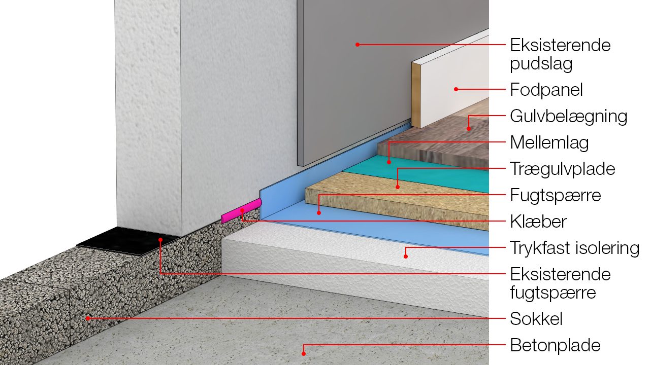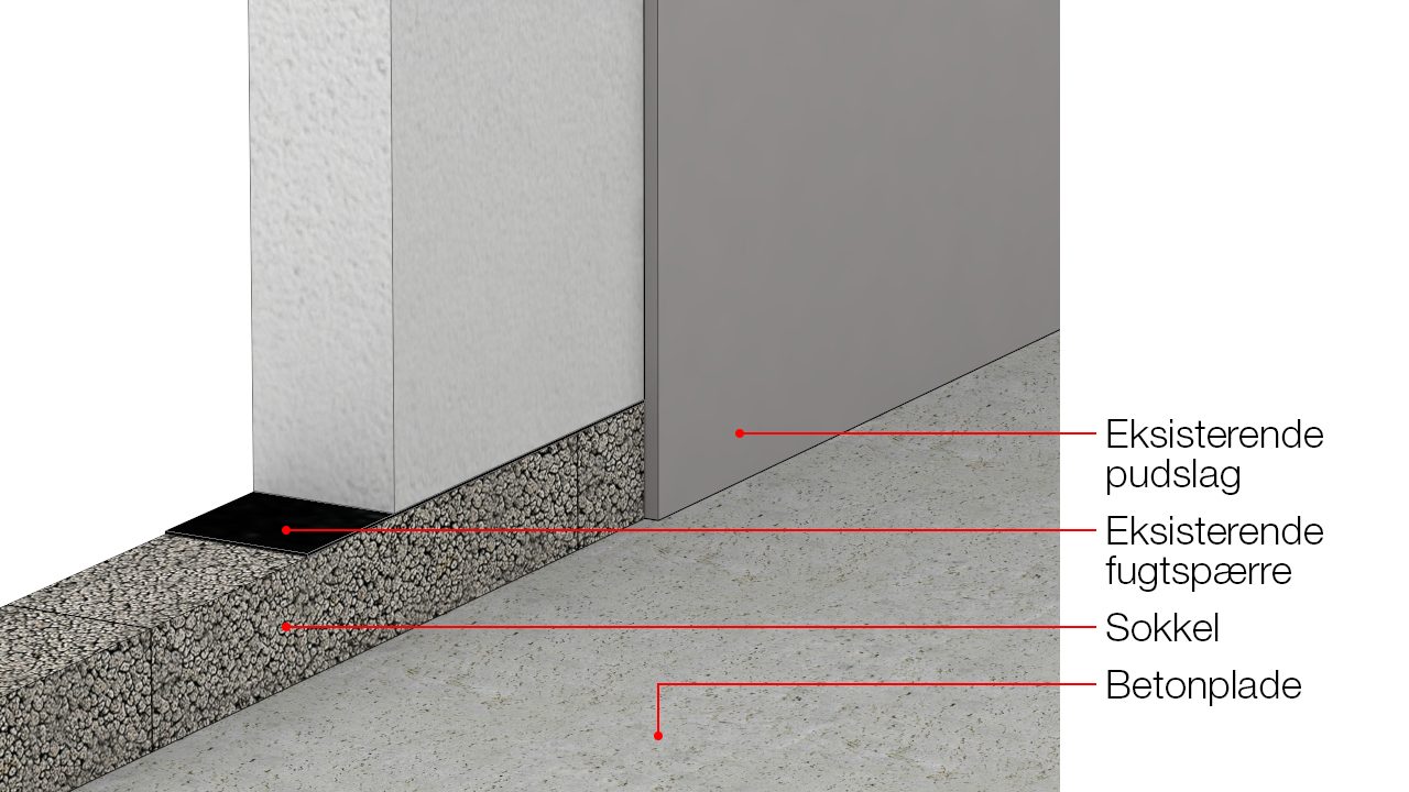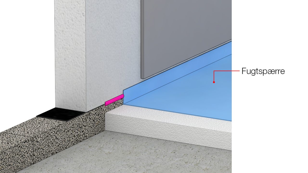 Tilslutning til fugtspærre i væg